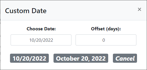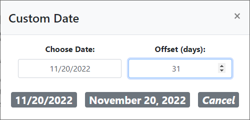 - Select Custom Date in the drop-down list. This dialog is displayed.